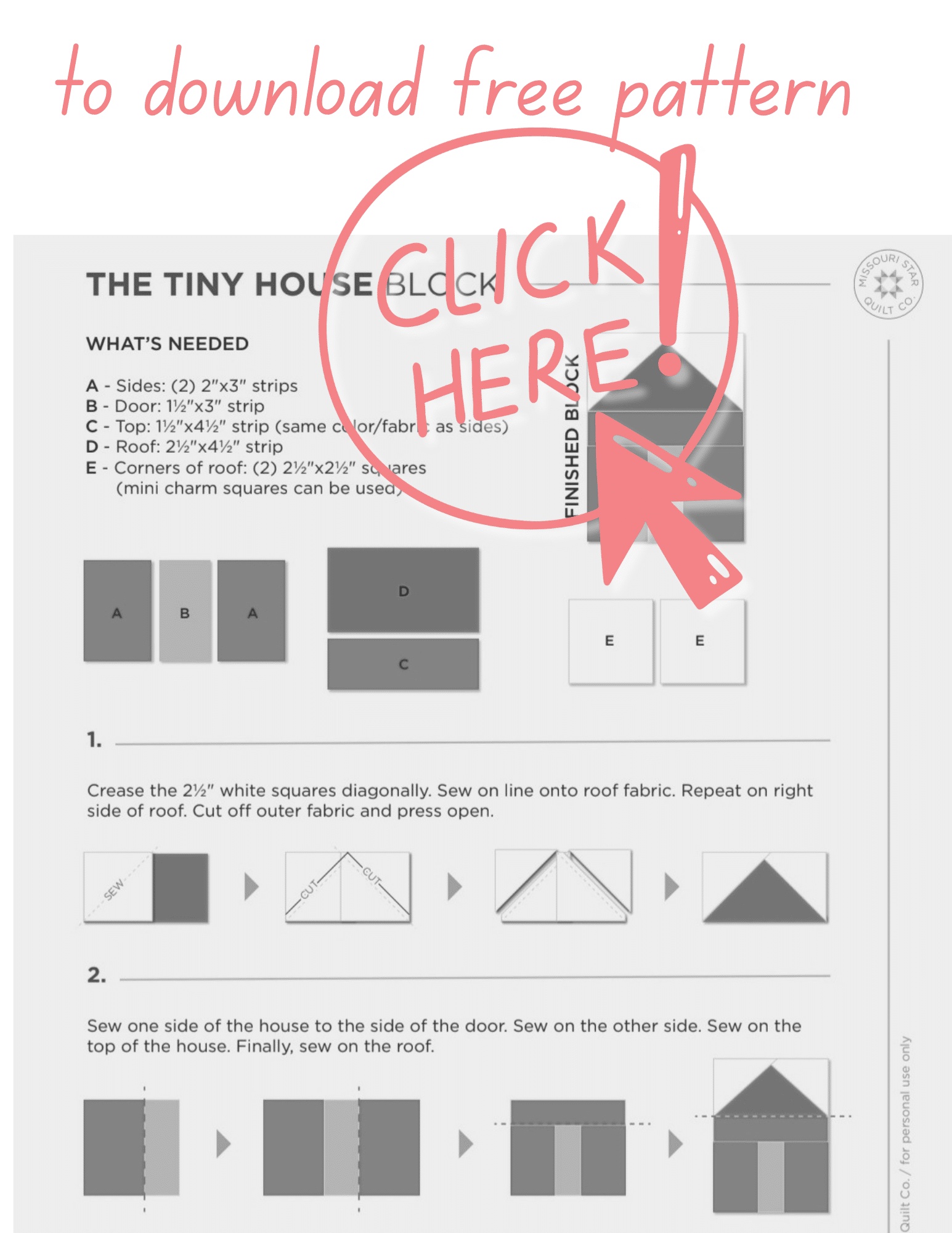 Bring a tiny house quilt block to the sale and let’s build a community in a quilt to help housing in our own community at the same time. Scroll down for the free pattern from MSQ, a video tutorial and all the details!
